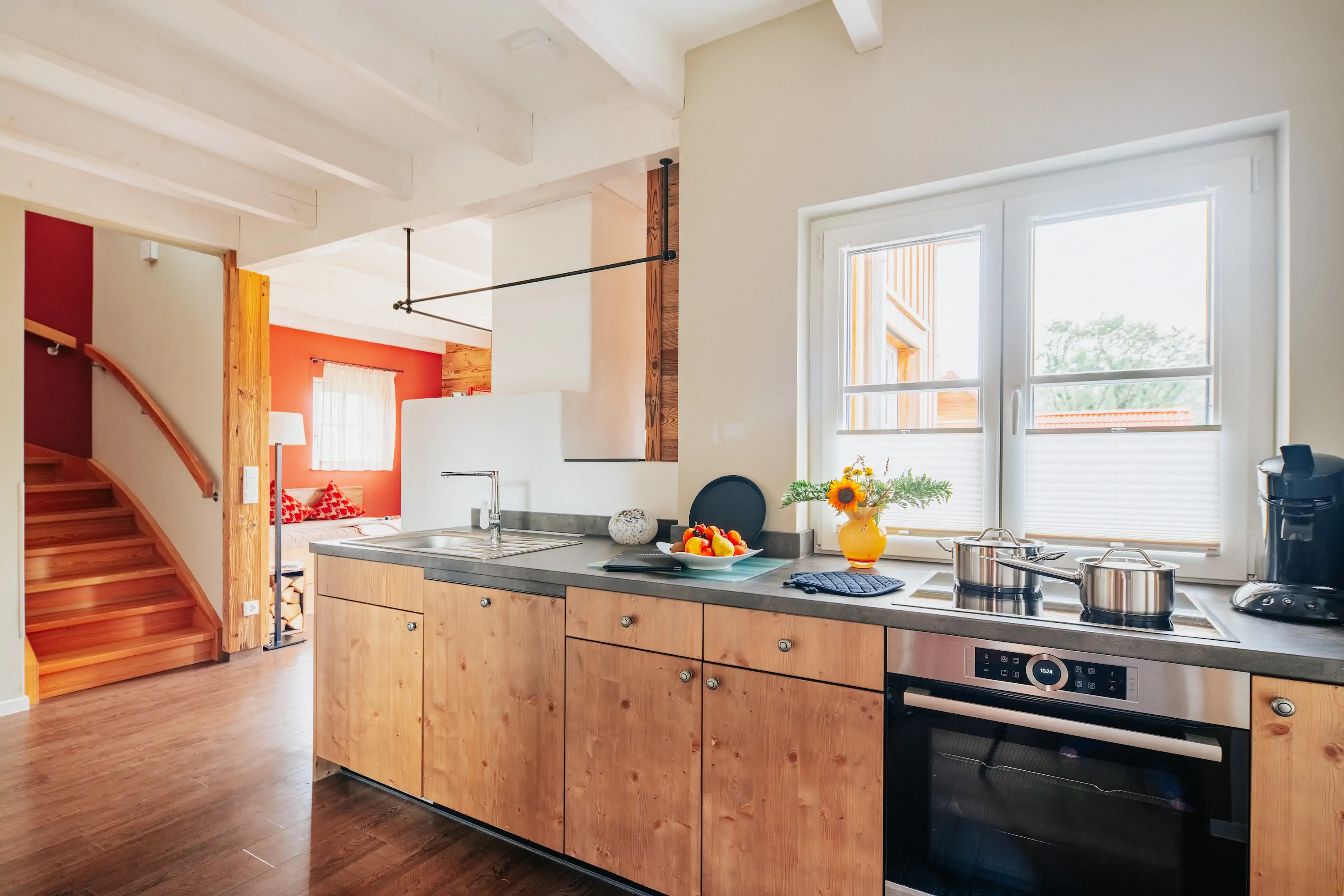 - Große vollausgestattete Küche im Erdgeschoss: Hier wird gekocht, was das Zeug hält – vom Frühstück bis zum Mitternachtssnack.